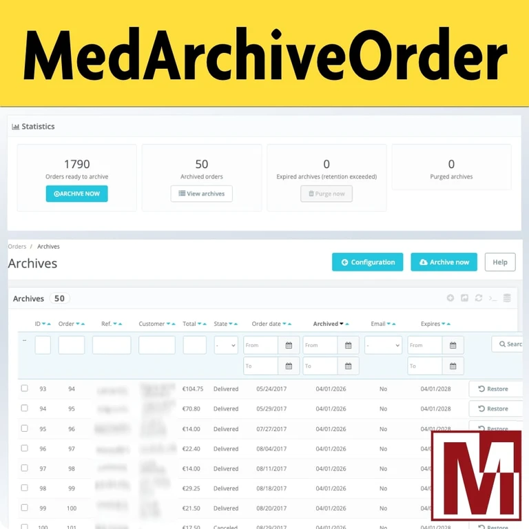 After several years of activity, an online store accumulates thousands — sometimes tens of thousands — of orders. This data, rarely accessed beyond 2 or 3 years, continues to weigh on back-office performance, slow down exports, and inflate backups. Until now, merchants had to choose between keeping everything and suffering the slowdowns, or deleting manually at the risk of losing important information.